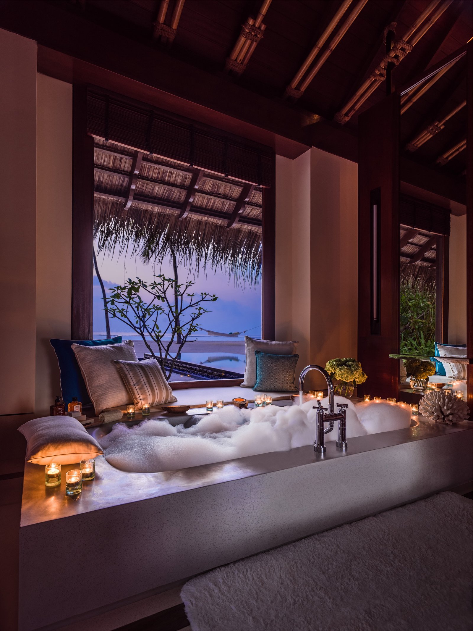 The Beach Villas with Pool at One&Only Reethi Rah offer 82 sqm of stylish indoor living and 126 sqm of expansive outdoor space, complete with a private infinity pool overlooking the beach. Secluded and serene, each villa features a king-size bed or two queen beds, breathtaking ocean views, and a luxurious en suite with a soaking tub, rain/jet shower, and twin vanities. Outside, relax on a sun-drenched terrace with dining and lounge areas, sway in a hammock under palm trees, and enjoy direct access to the pristine beach.