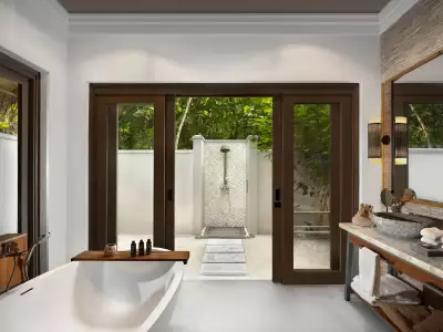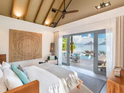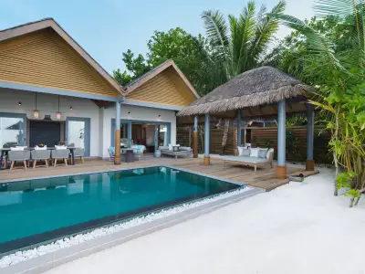 The Three Bedroom Beach Pool Residence at Vakkaru Maldives is a sprawling 450 sqm retreat, thoughtfully designed for those who value both space and sophistication. Blending tropical charm with modern luxury, each bedroom features an en-suite bathroom, walk-in wardrobe, private terrace with direct beach access, and an outdoor garden shower. Ideal for larger families or groups, this residence offers the perfect balance of shared living and secluded relaxation amidst lush island surroundings